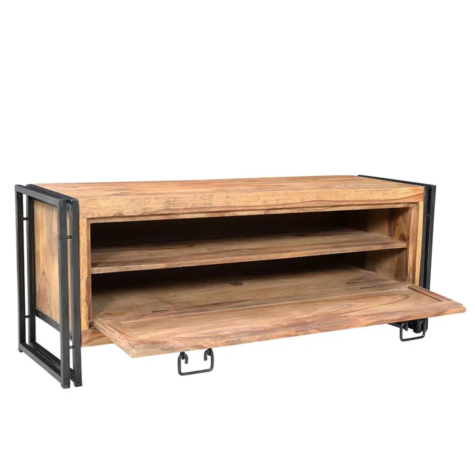 - Gebeizte und lackierte Holzoberfläche, Metallgestell antikschwarz lackiert