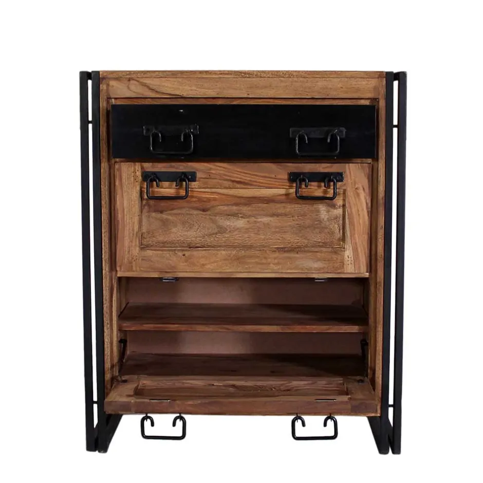 - Zweckmäßiger Schuhschrank in Akaziefarben und Schwarz