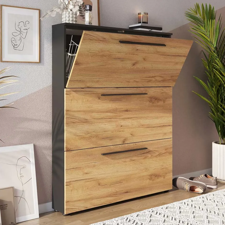 - Schicker Schuhschrank in Wildeichefarben und Anthrazit