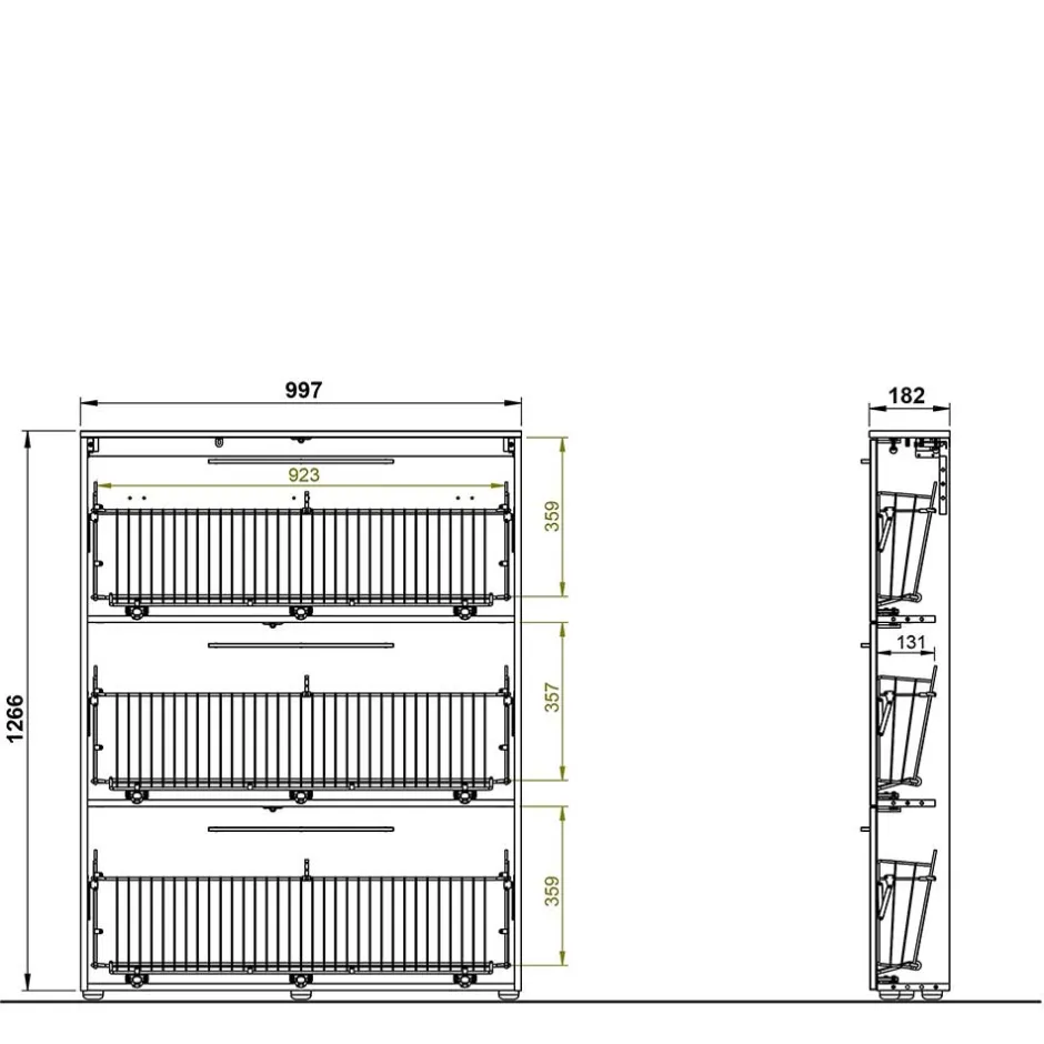 - Die drei Schuhklappen bieten Raum für bis zu maximal zwölf Paar Schuhe