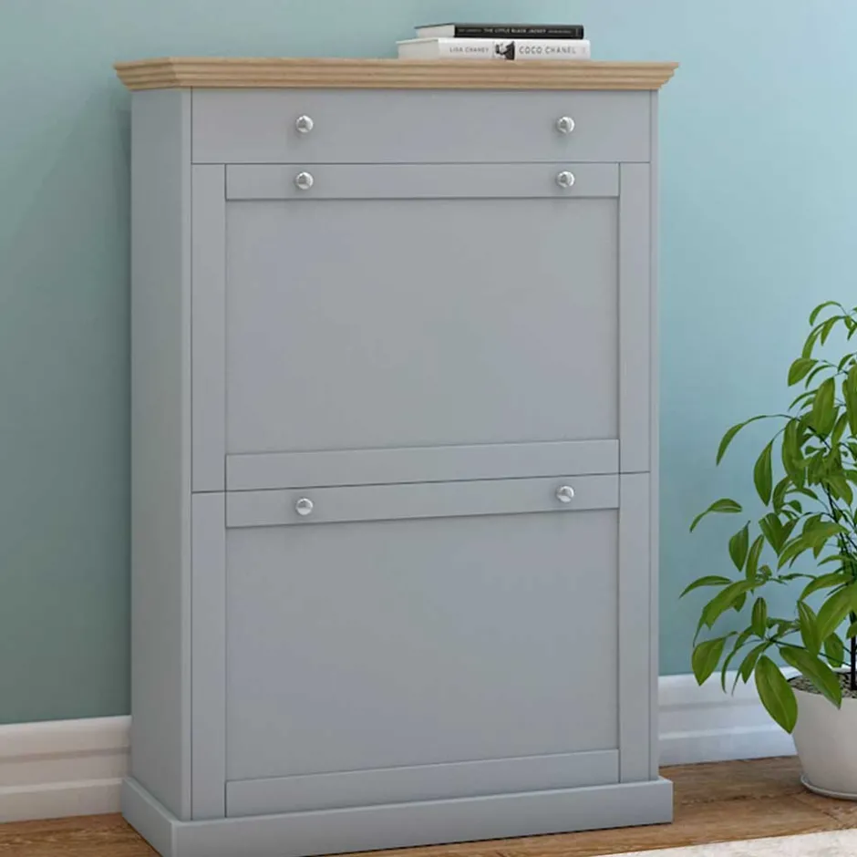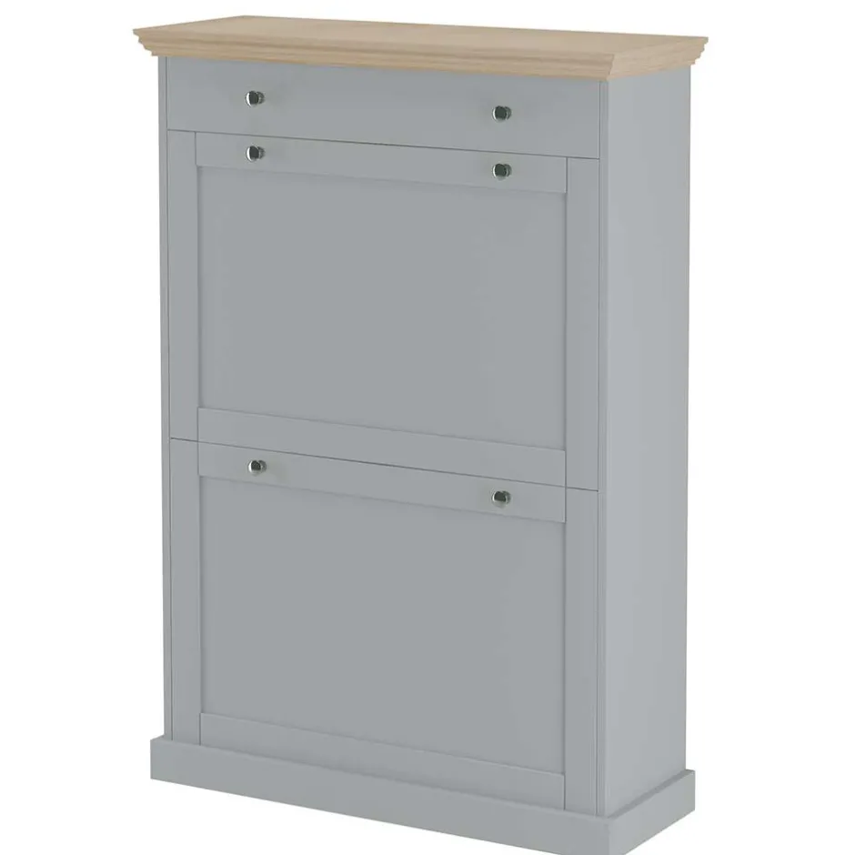- Attraktiver Schuhschrank in Grau und Eichefarben