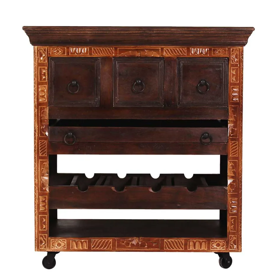 - Praktischer Küchenwagen in Teak antik Dunkelbraun