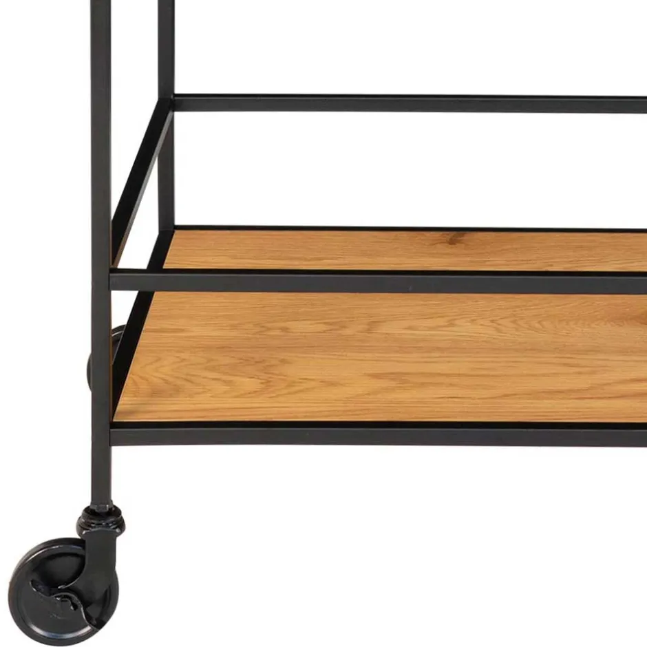 - Kompakter Servierwagen in Eichefarben und Schwarz