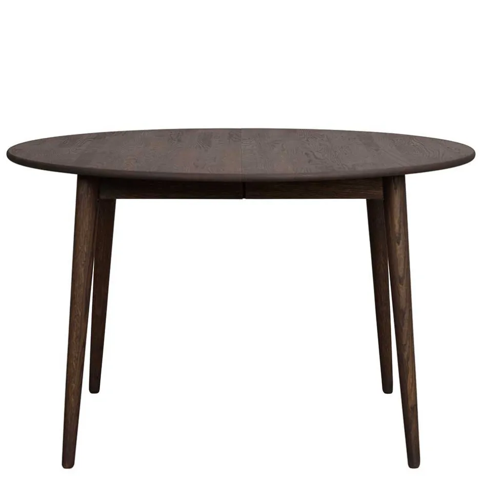 - Je nachdem ob Basiszustand oder ausgezogen ist der Tisch rund oder oval