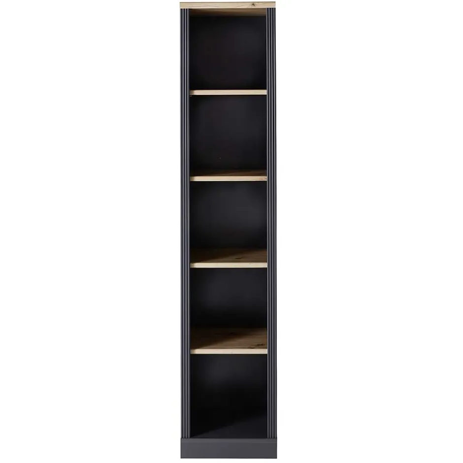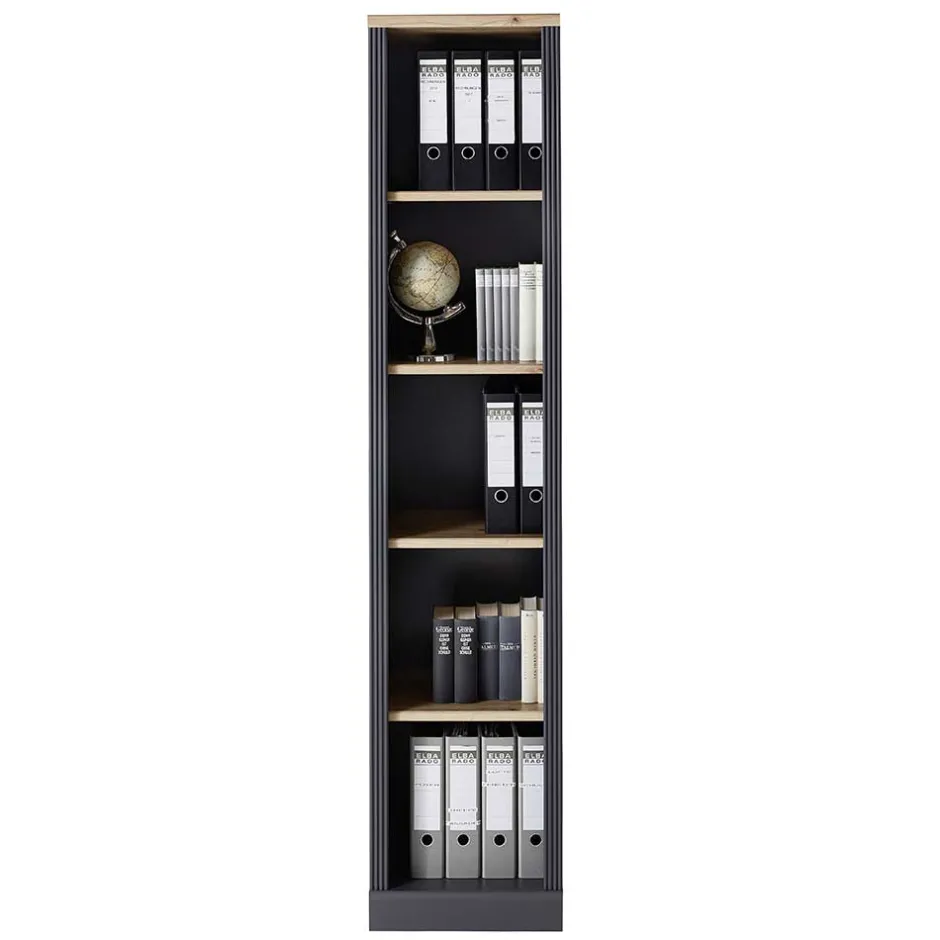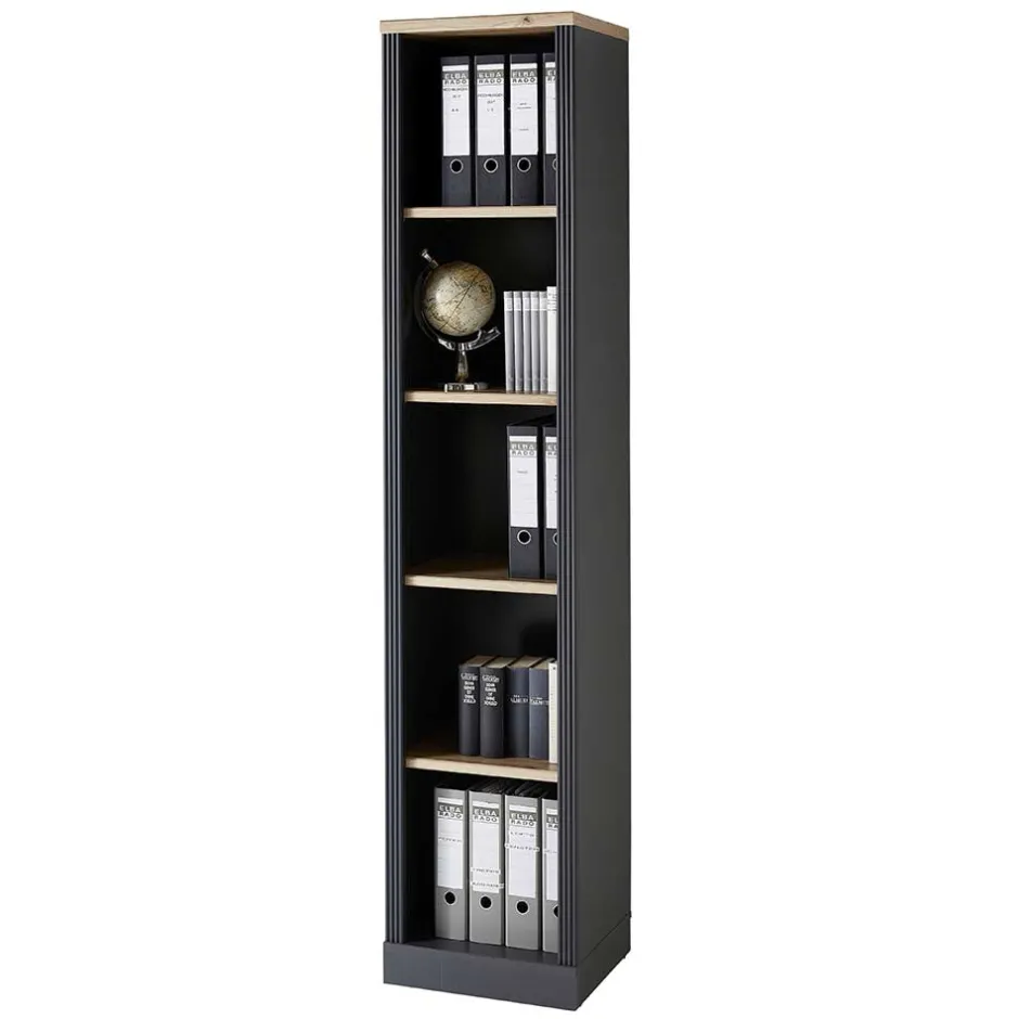 - Schmales Aktenregal in Dunkelgrau und Eichefarben