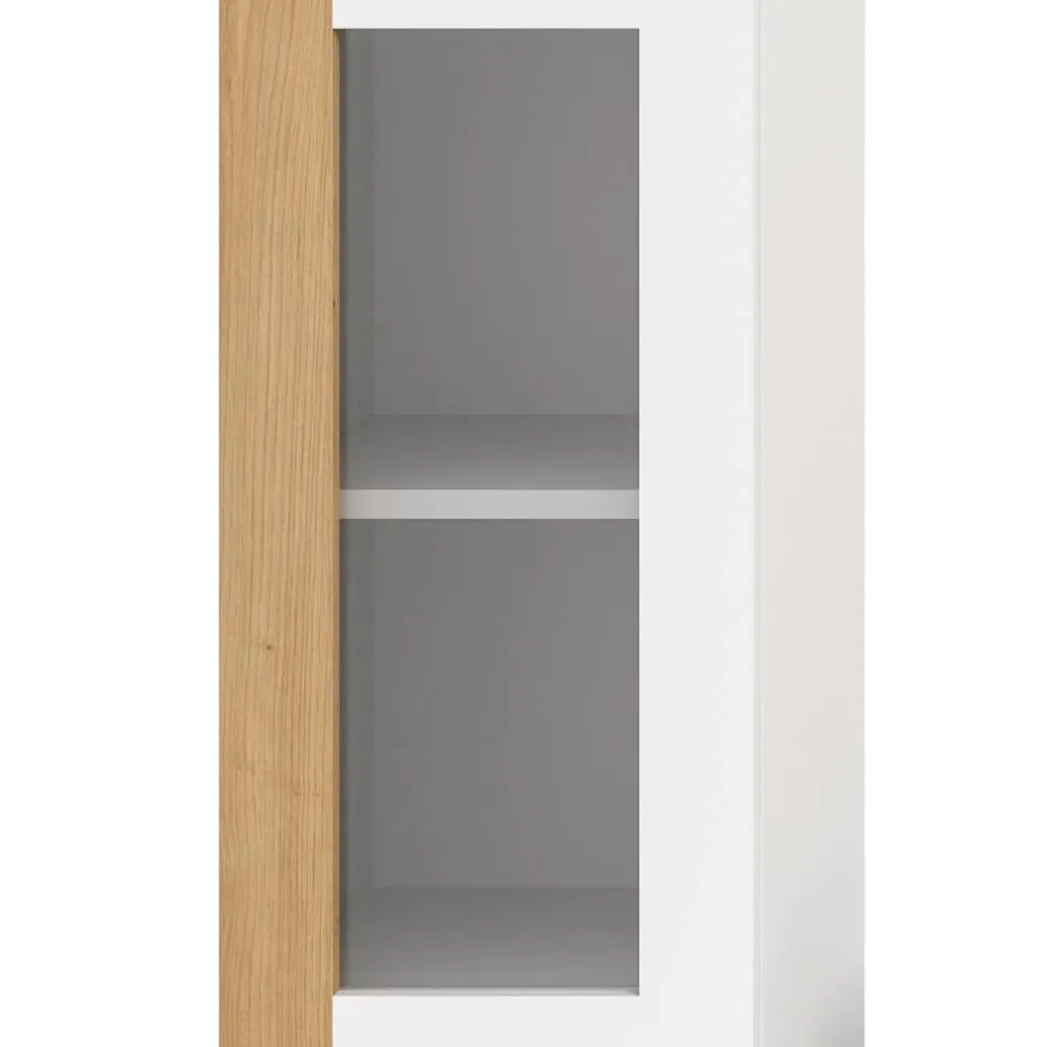 - Kompakte Vitrine in Weiß und Wildeichefarben