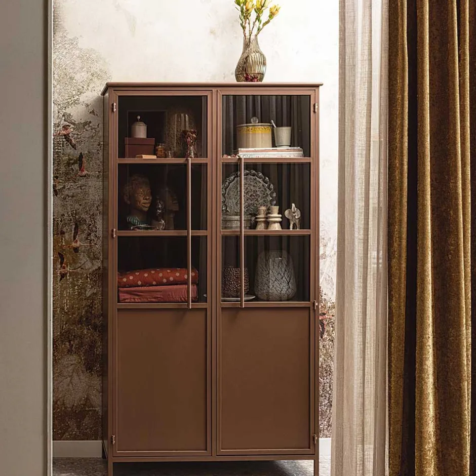 - Trendiger Vitrinenschrank in Braun