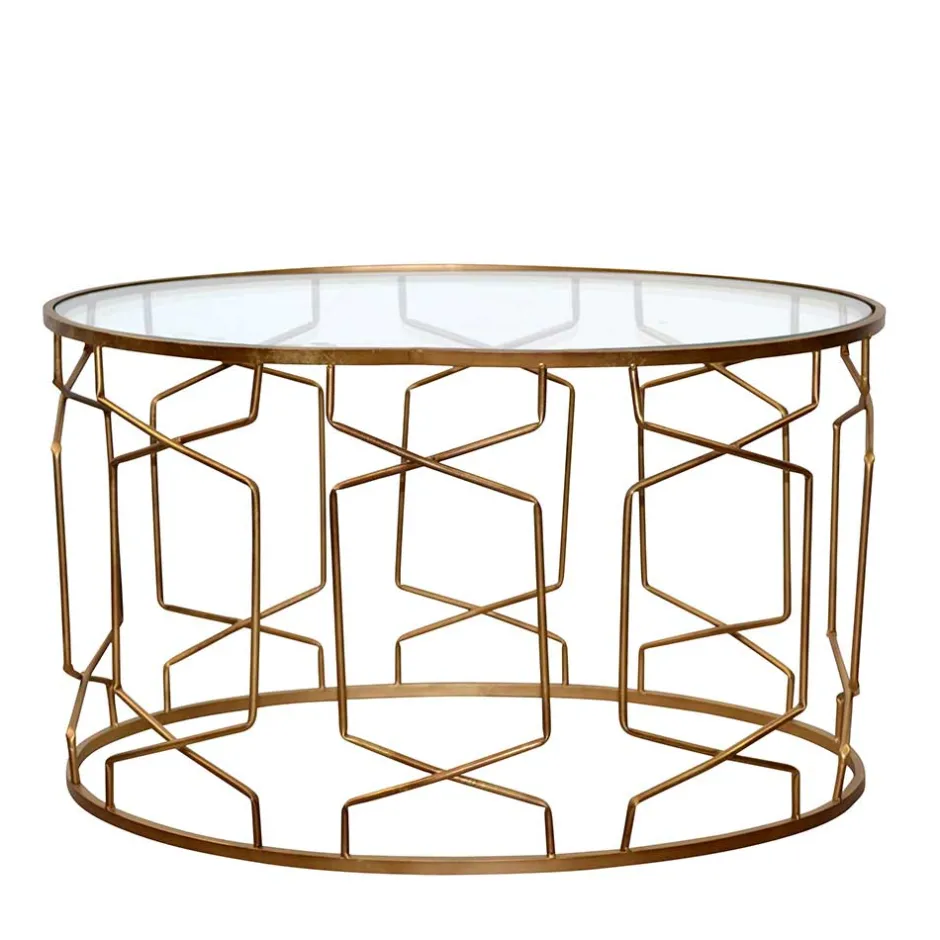 - Eleganter Couchtisch in Goldfarben und Transparent