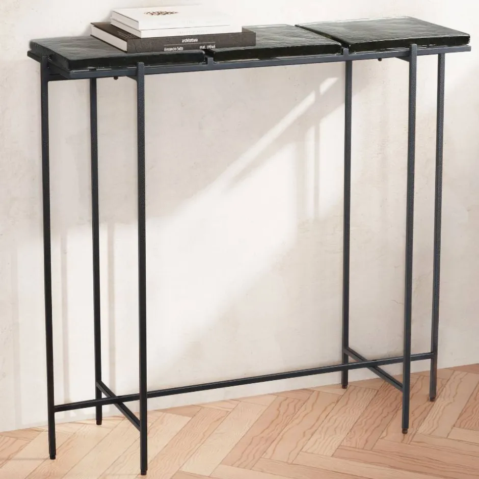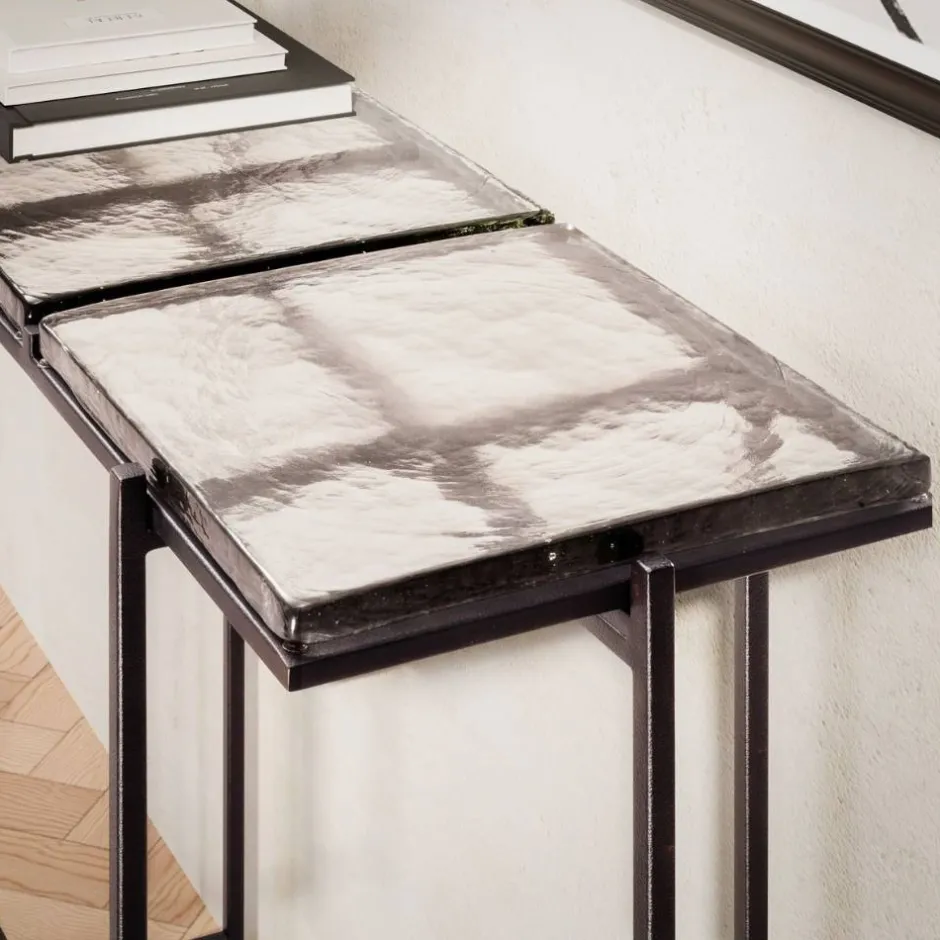 - Dreigeteilte Strukturglas Tischplatte, Maße je Glasplatte (BxT): 28×28 cm (alle abnehmbar)