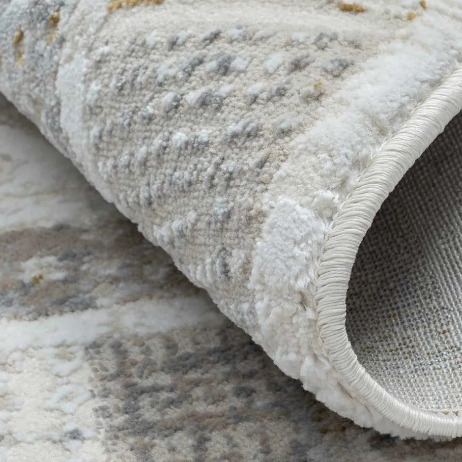 - Runder Teppich in Hellgrau und Cremefarben