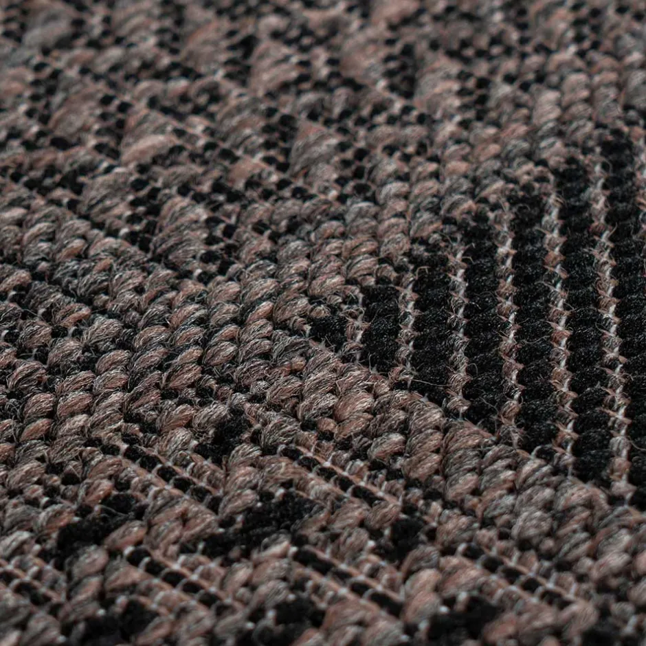 - Durch die Verarbeitung einer feuchtigkeitsbeständigen Kunstfaser ist der Teppich auch für den Outdoor-Bereich geeignet