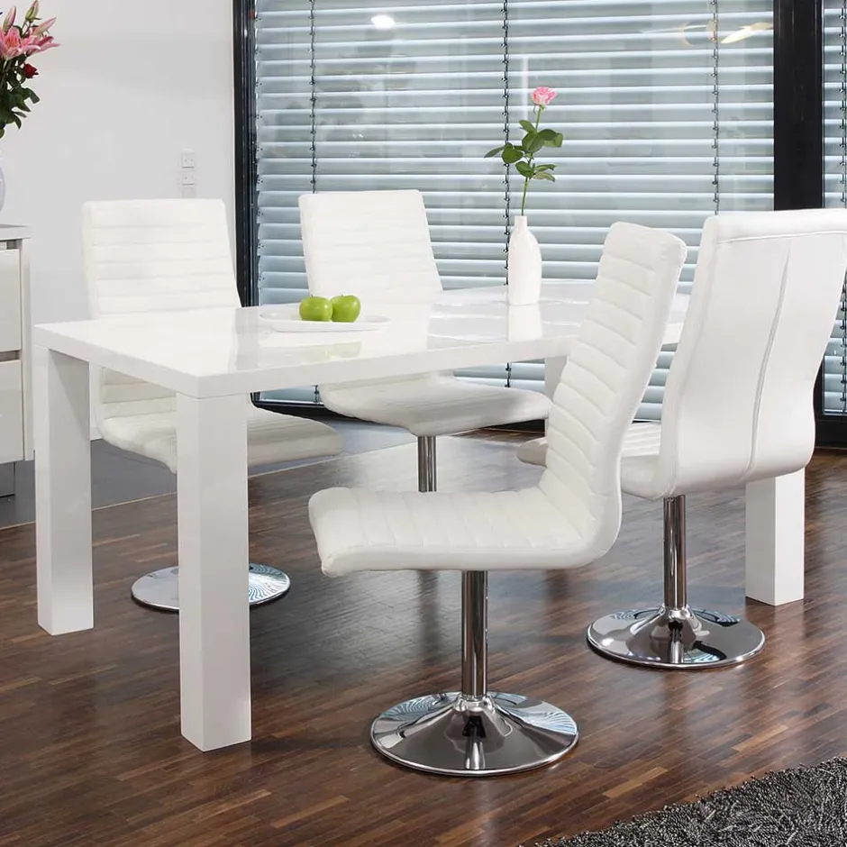 - Elegante Esszimmergruppe in Weiß und Chromfarben