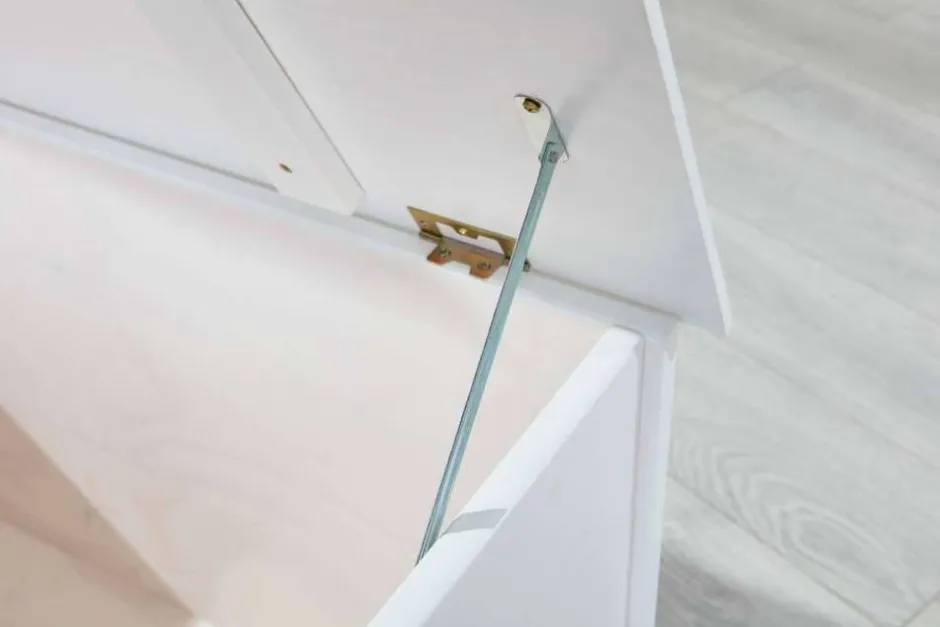 - Weiß lackierte Oberfläche, durchscheinende Holzmaserung, Front dekorativ gefräst