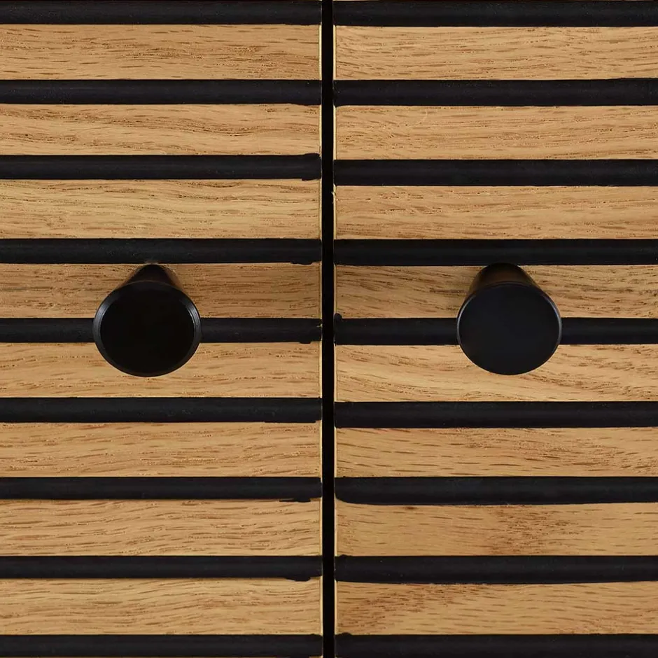 - Front dekorativ in Rillenstruktur gestaltet und mit Eiche echtholzfurniert