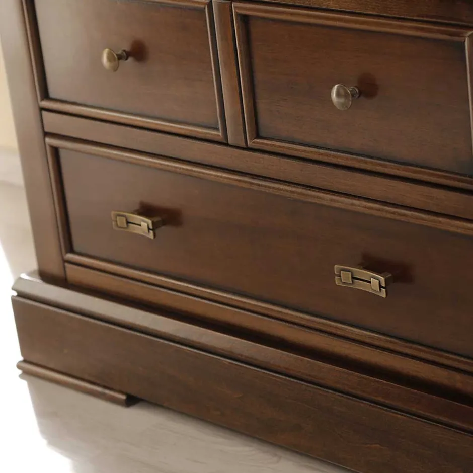 - Zwei geräumige Schubladen (obere in Zwei-Schubkasten-Optik) mit praktischem Holzauszug bieten zusätzlichen Stauraum