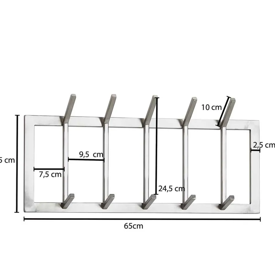 - Oben und unten jeweils eine Reihe mit fünf Kleiderhaken
