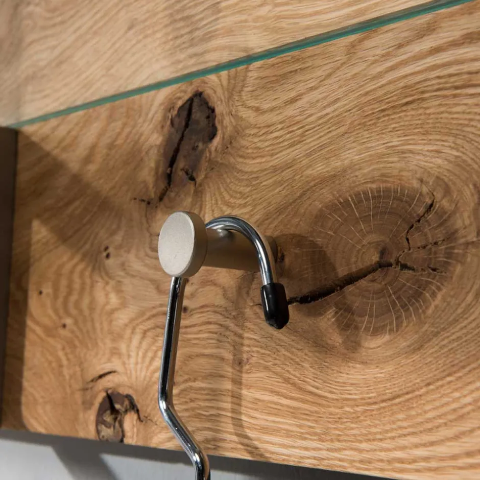 - Hergestellt aus massivem Eichenholz, Glas und Metall