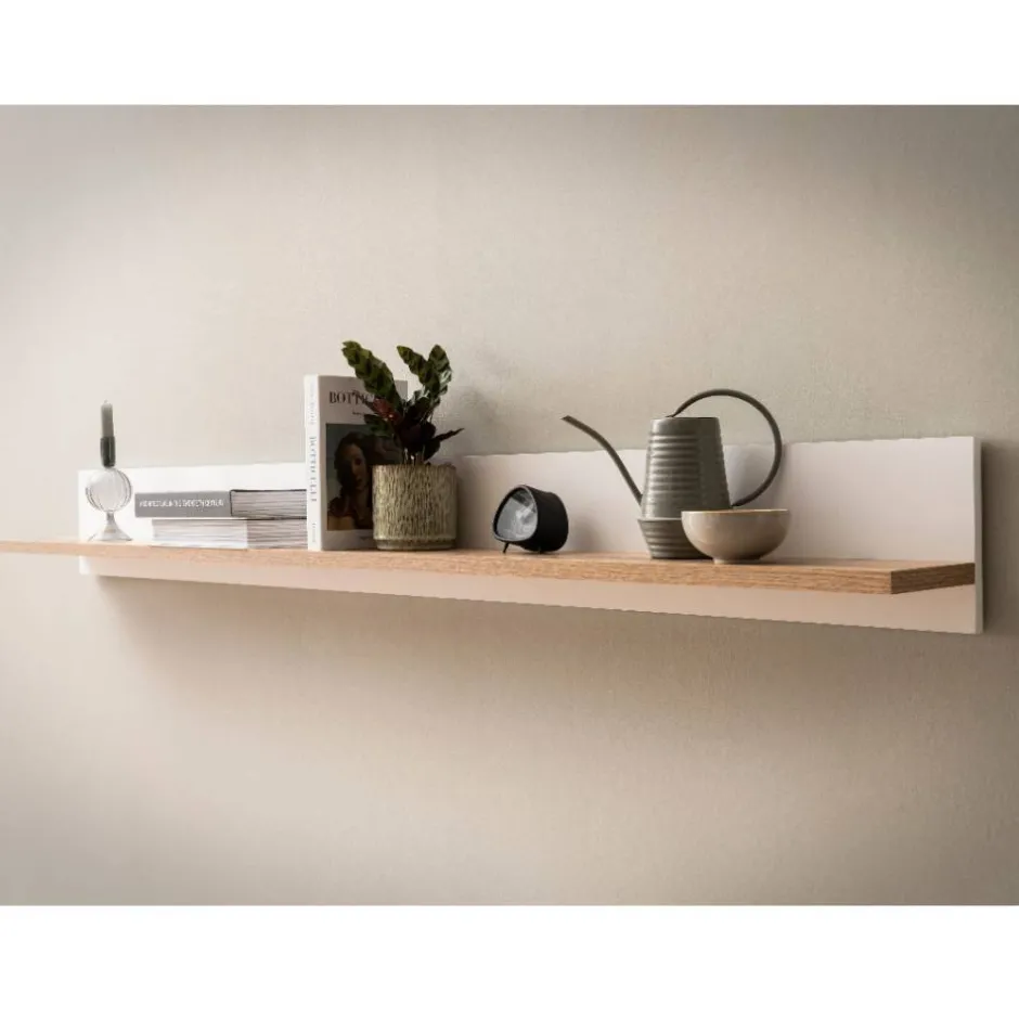 - Eine Ablage in Eichefarben, Rückwand weiß