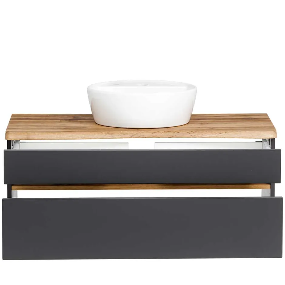 - Trendstarker Waschtisch mit Baumkante in Dunkelgrau und Wildeichefarben
