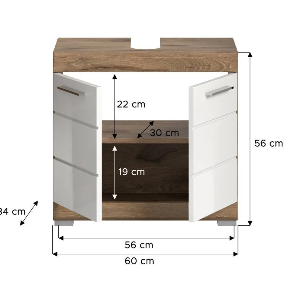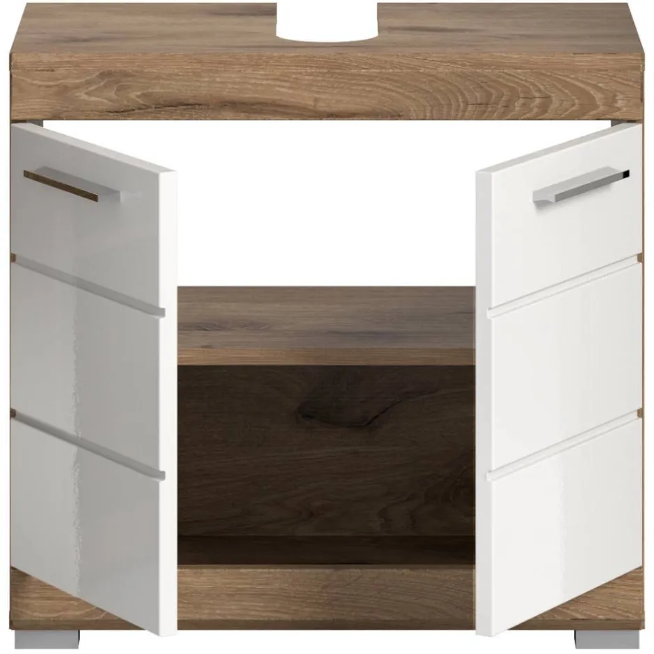 - Ansprechender Waschbeckenunterschrank in Weiß und Wildeichefarben
