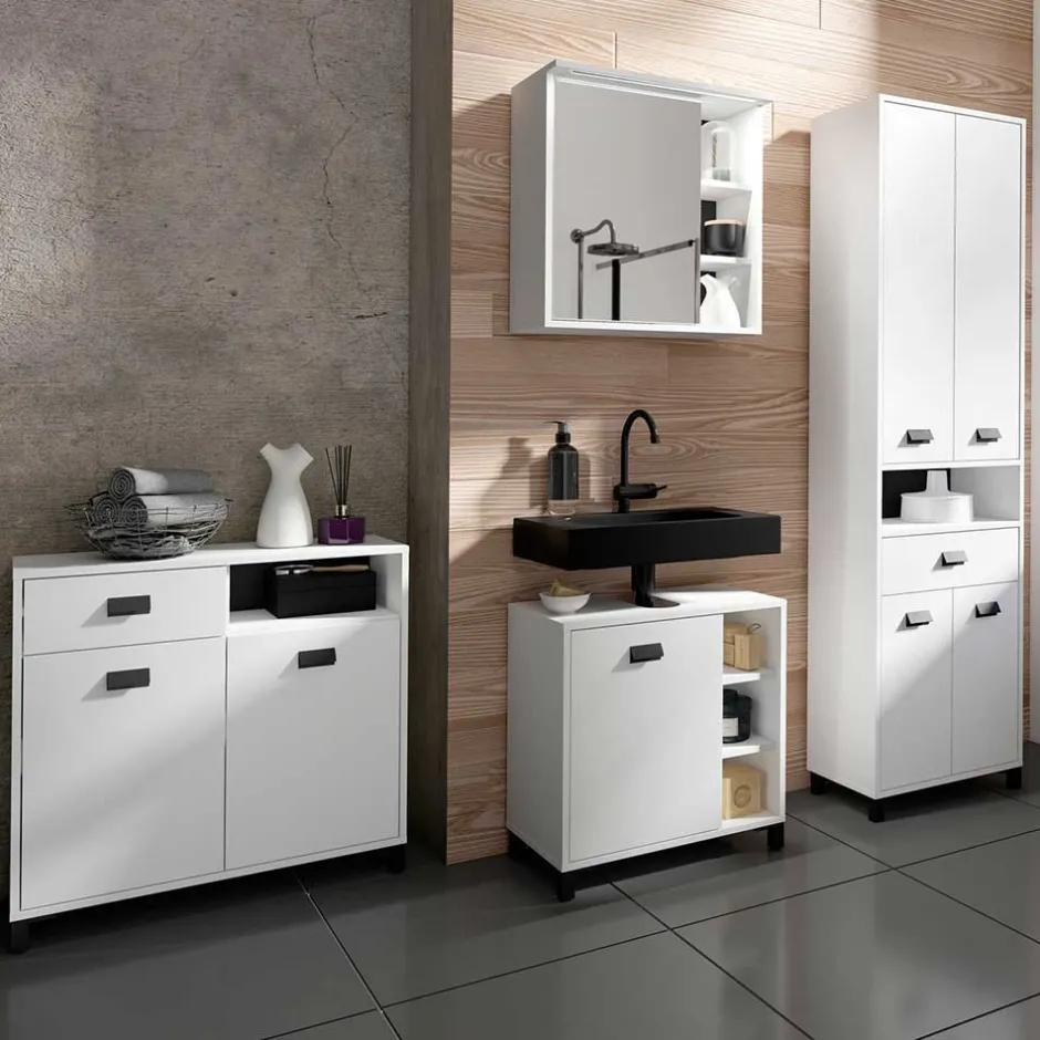- Klasse Bad-Unterschrank in Weiß mit Schwarz