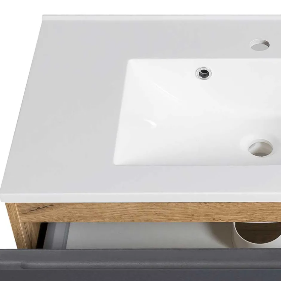 - Geradliniger Waschtisch in Dunkelgrau und Wildeichefarben