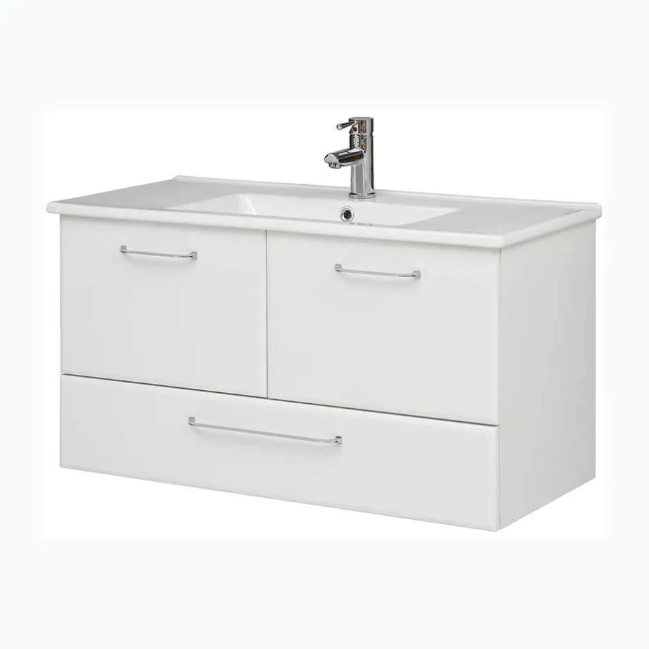 - Weißes Keramikbecken mit integriertem Überlauf, Lieferung ohne Armaturen und Abfluss Zubehör