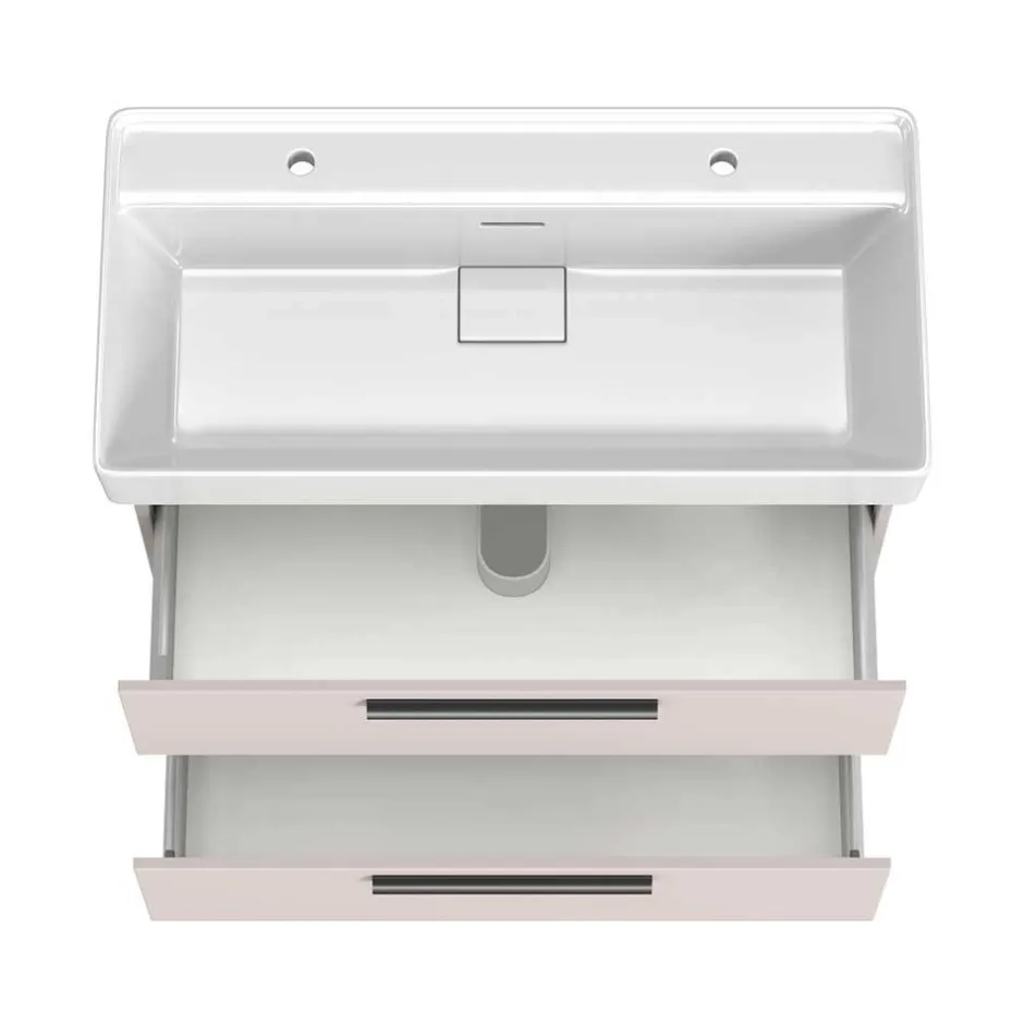 - Zwei Schubladen mit Metallauszug und Soft-Close Funktion, in der oberen ein Siphonausschnitt