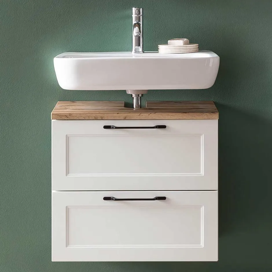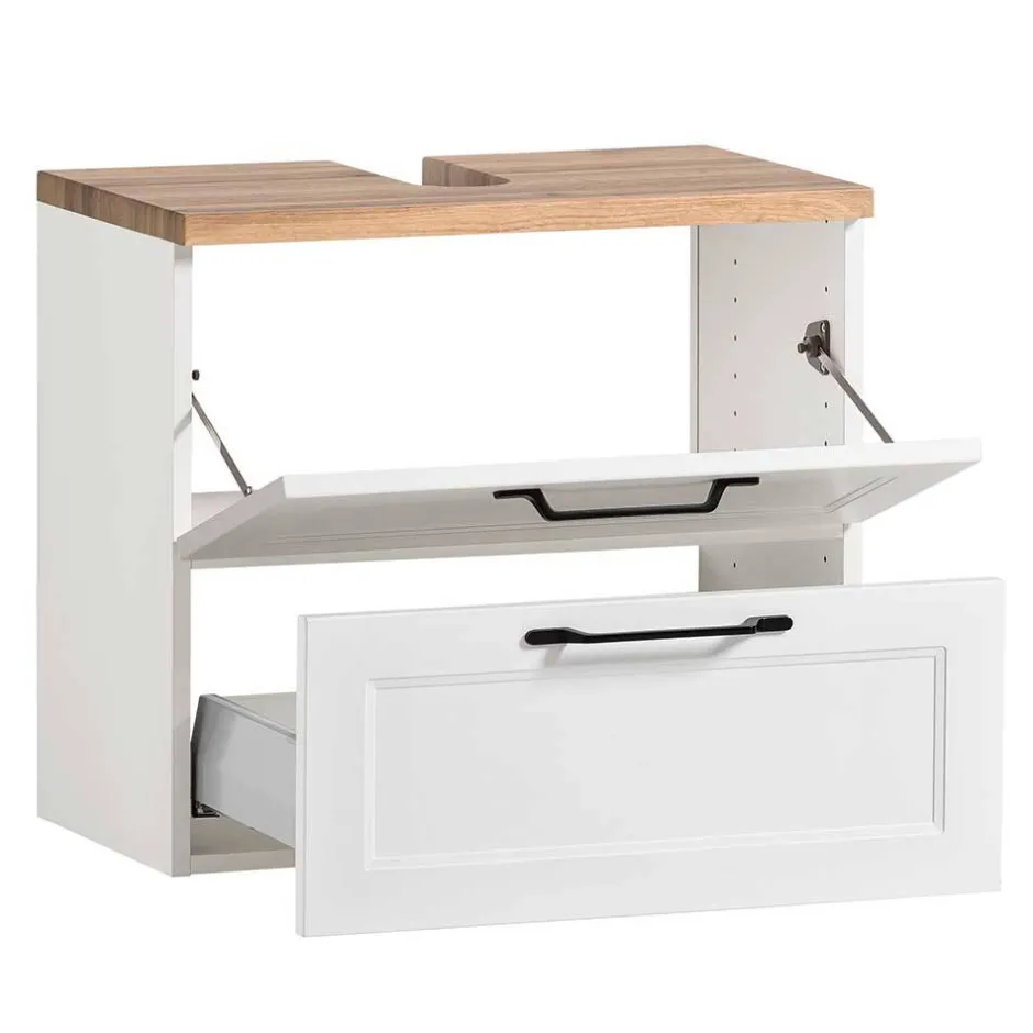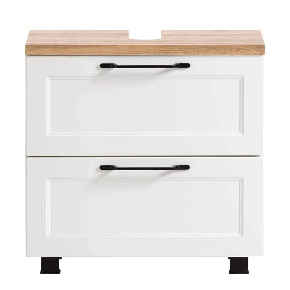 - Top Waschbeckenunterschrank in Weiß und Wildeichefarben