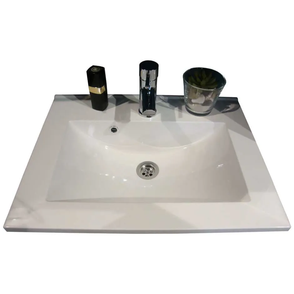 - Mit weißem Mineralgussbecken, Lieferung ohne Armaturen, Löcher für die Montage der Armaturen bereits vorgebohrt