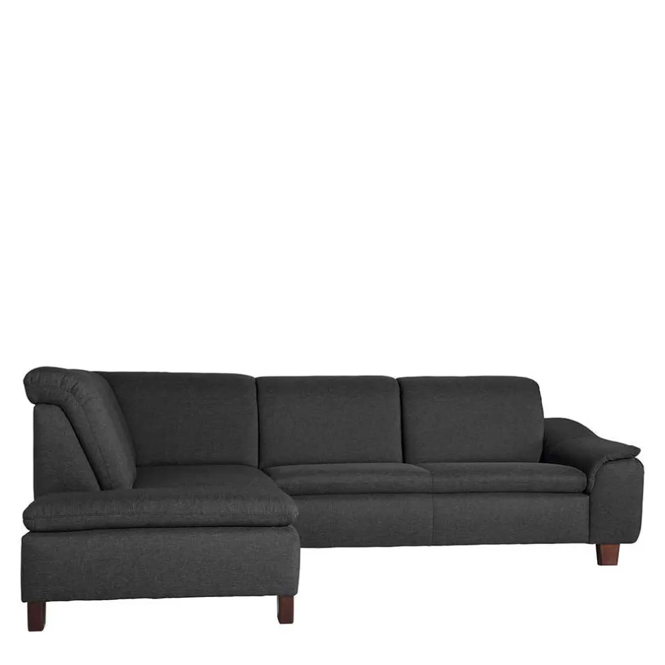 - Trendstarkes Ecksofa in Dunkelgrau und Nussbaumfarben