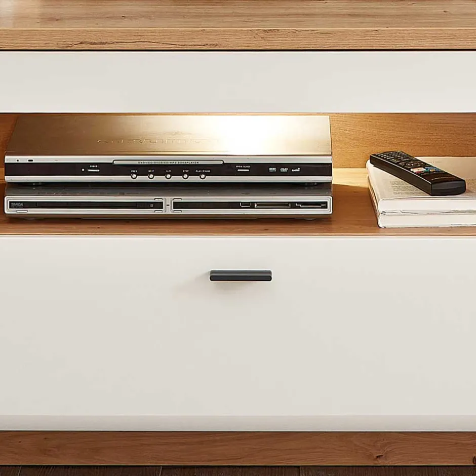 - Stylische Wohnwand in Weiß und Wildeichefarben