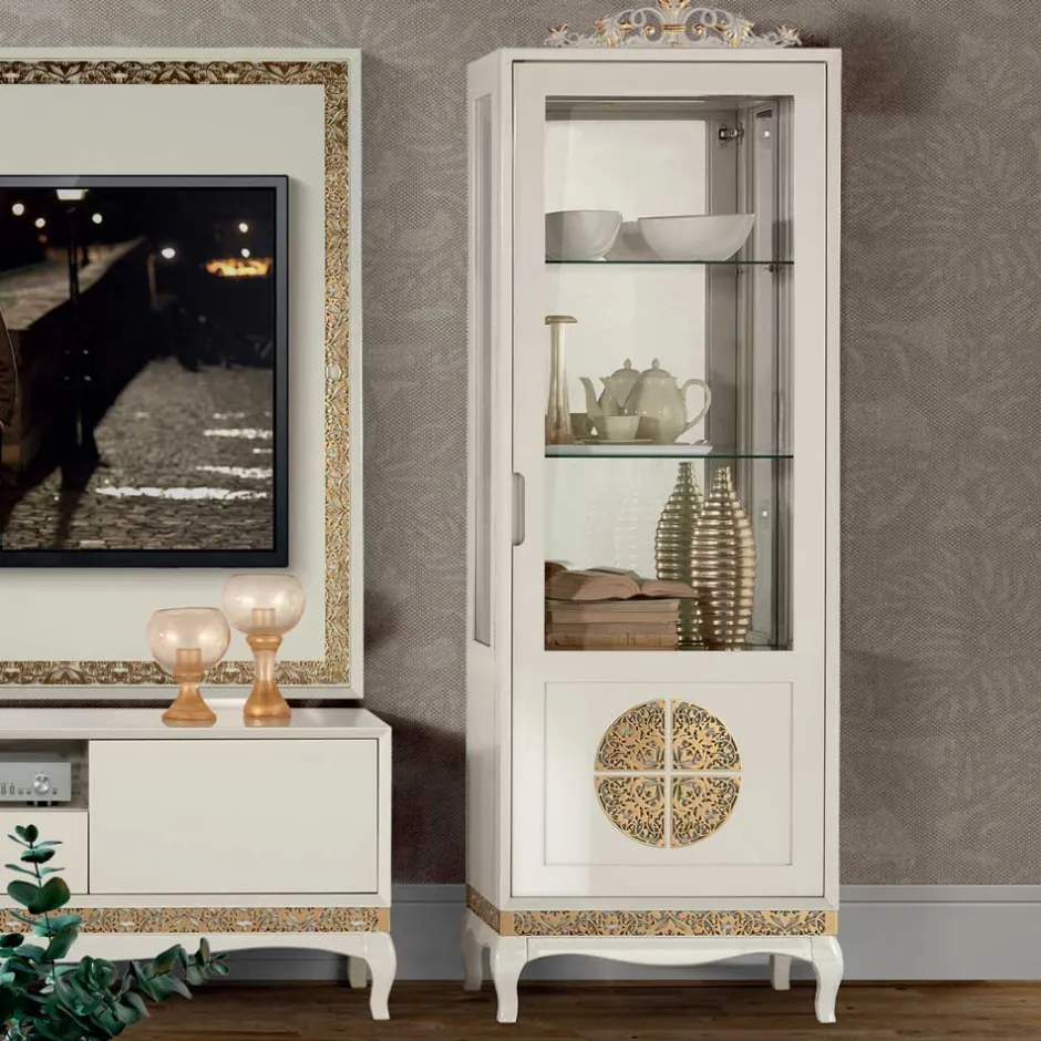 - Neorenaissance Wohnwand in Weiß und Goldfarben