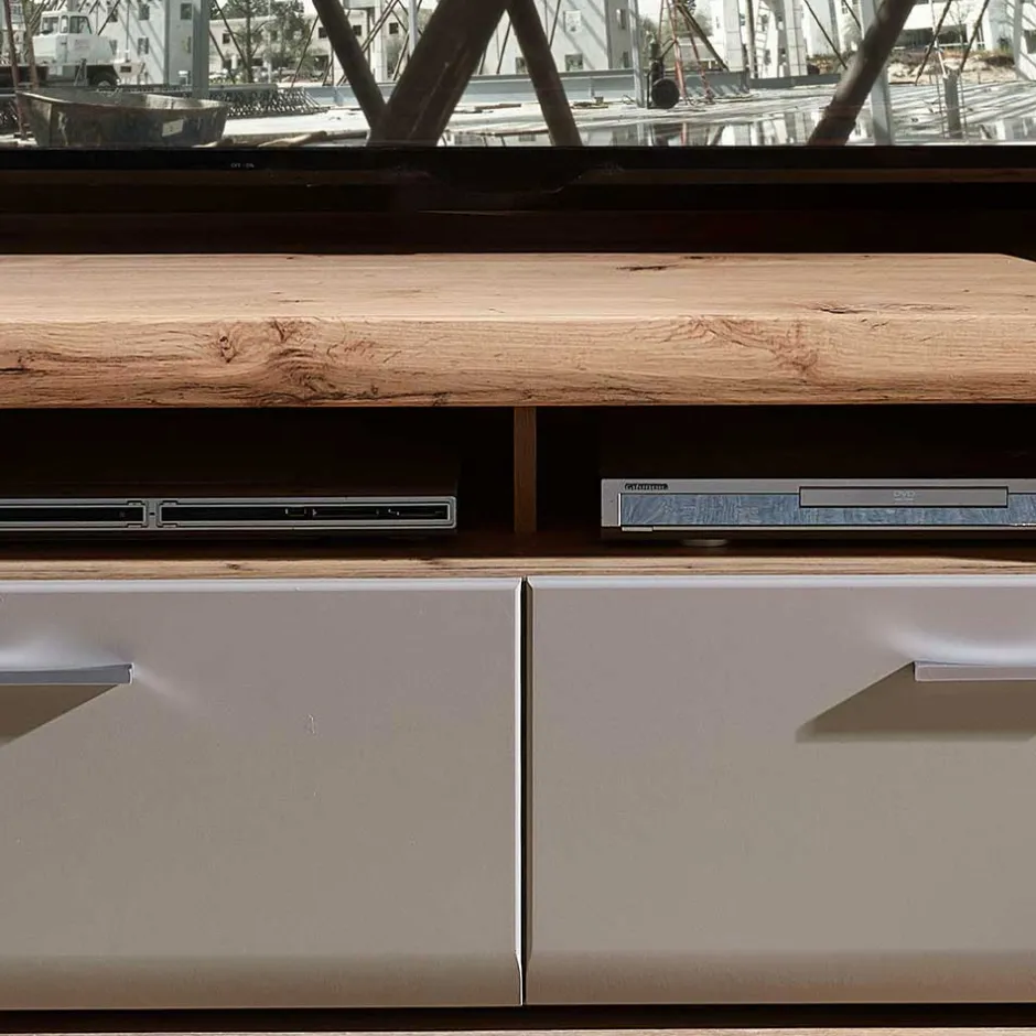 - Rückwand mit zwei Löchern zur Kabelführung im TV-Board vorhanden