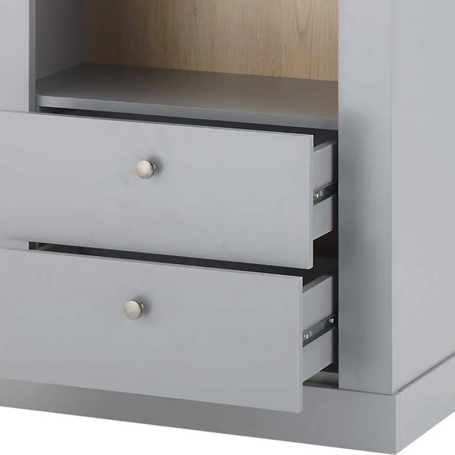 - Schicke Wohnwand in Lichtgrau und Eichefarben