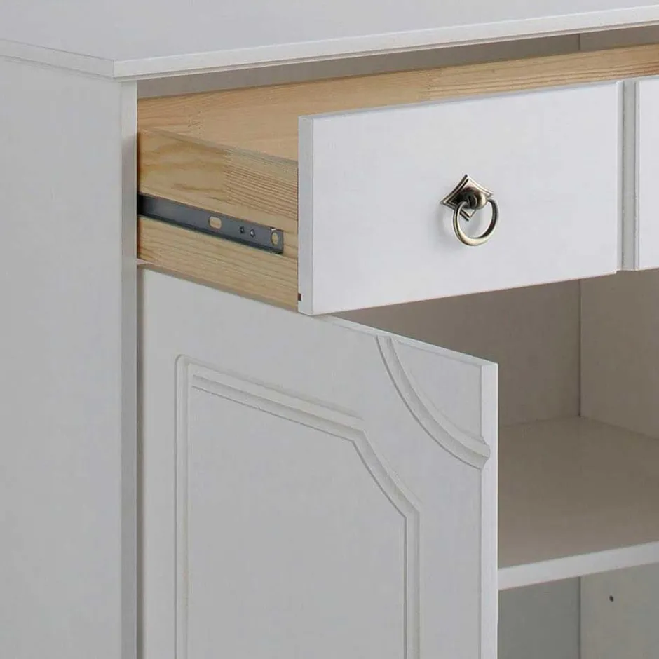 - Eine Schublade mit Metallauszug, wirkt optisch wie drei