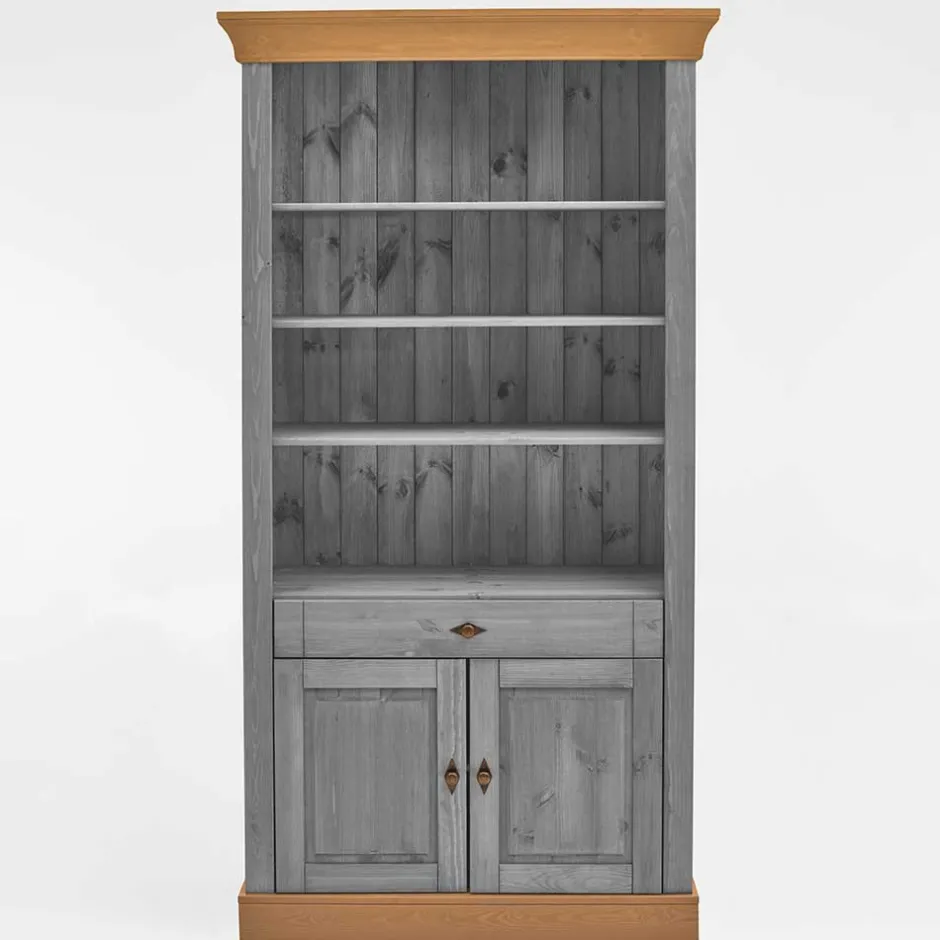 - Trendstarkes Wohnzimmerregal in Grau und Kiefer Laugenfarben