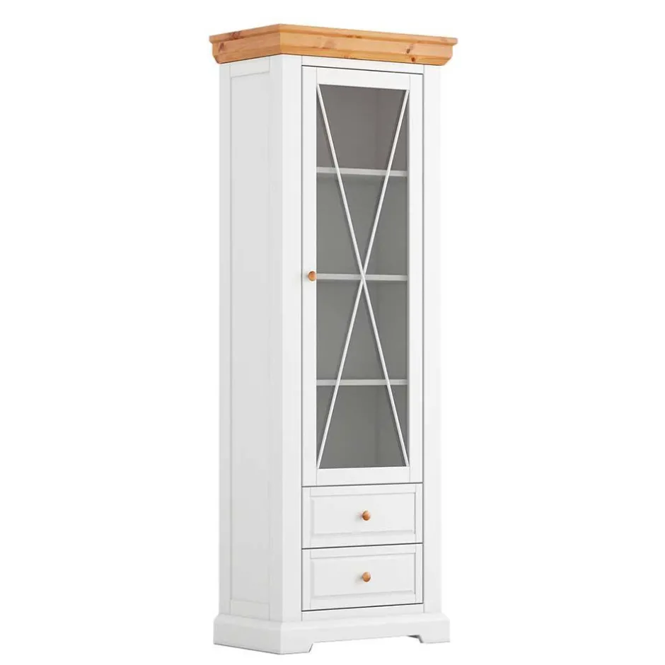 - Klasse Vitrine in Weiß und Kieferfarben