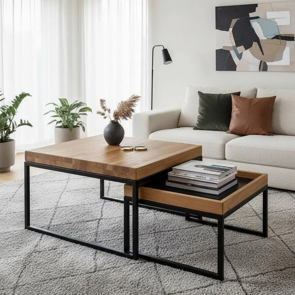 - Sachliches Couchtisch Set in Asteichefarben und Schwarz