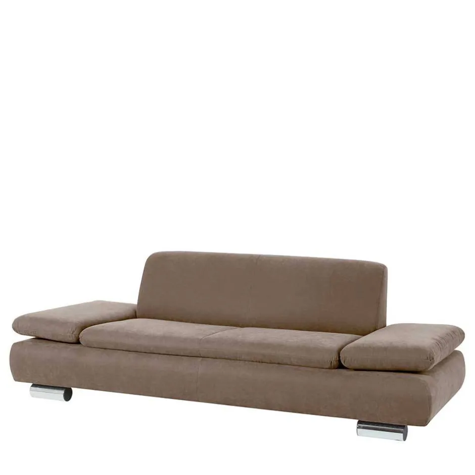 - Schlichtes Sofa in Beigegrau und Chromfarben