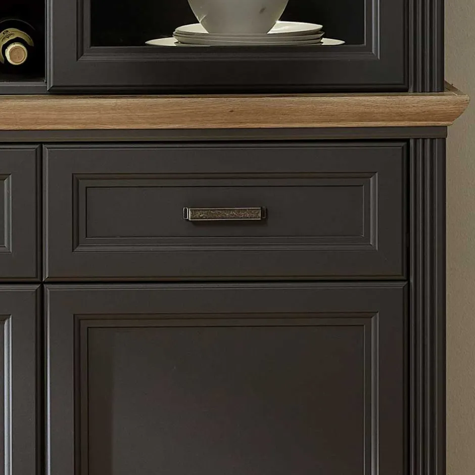 - Wunderbarer Buffetschrank in Dunkelgrau und Eichefarben