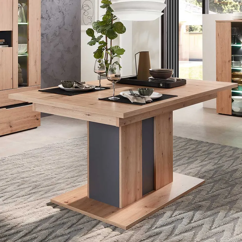 - Ansprechender Esstisch in Wildeichefarben und Dunkelgrau