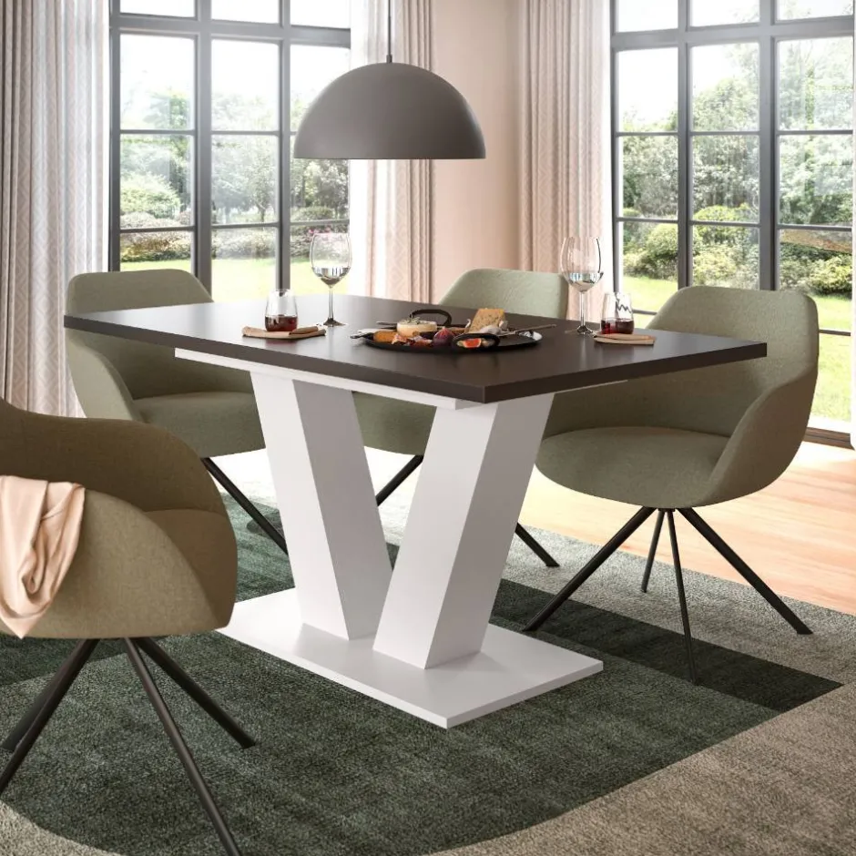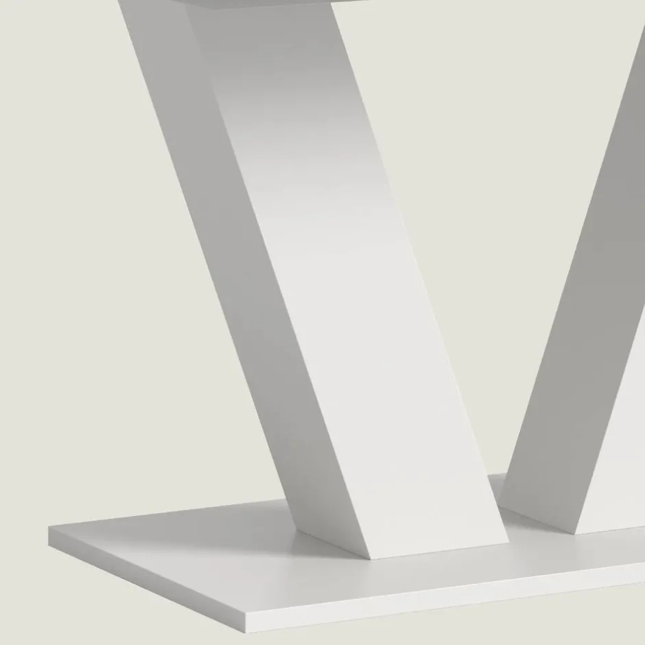 - Weißes Gestell in V-Form mit breiter Bodenplatte