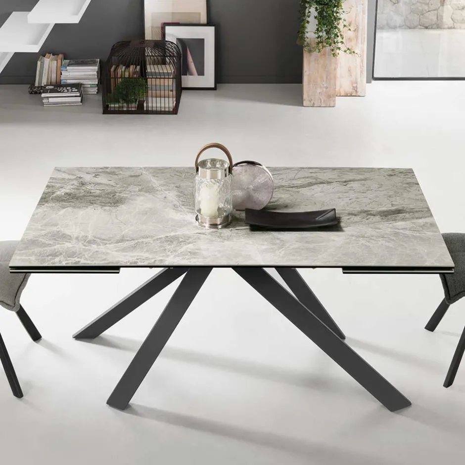 - Hochwertige Tischplatte aus Sinterstein in grau-hellgrauer Marmor Optik