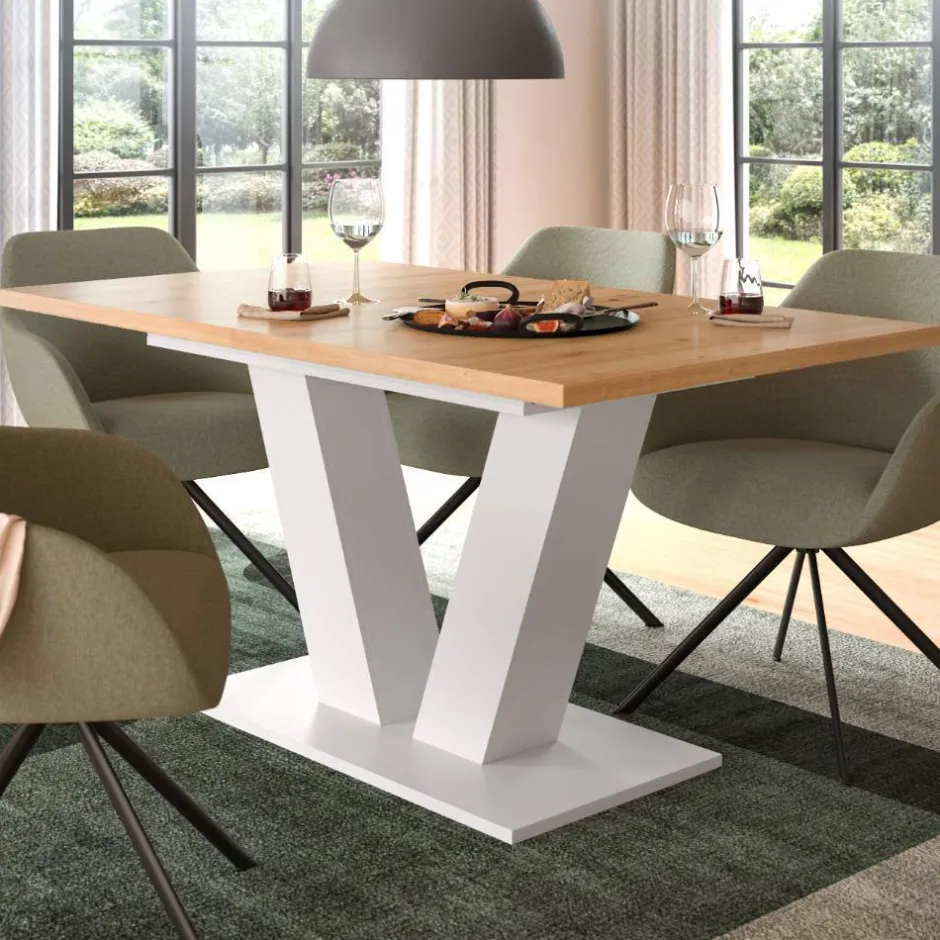 - Aktueller Küchentisch in Weiß und Wildeichefarben