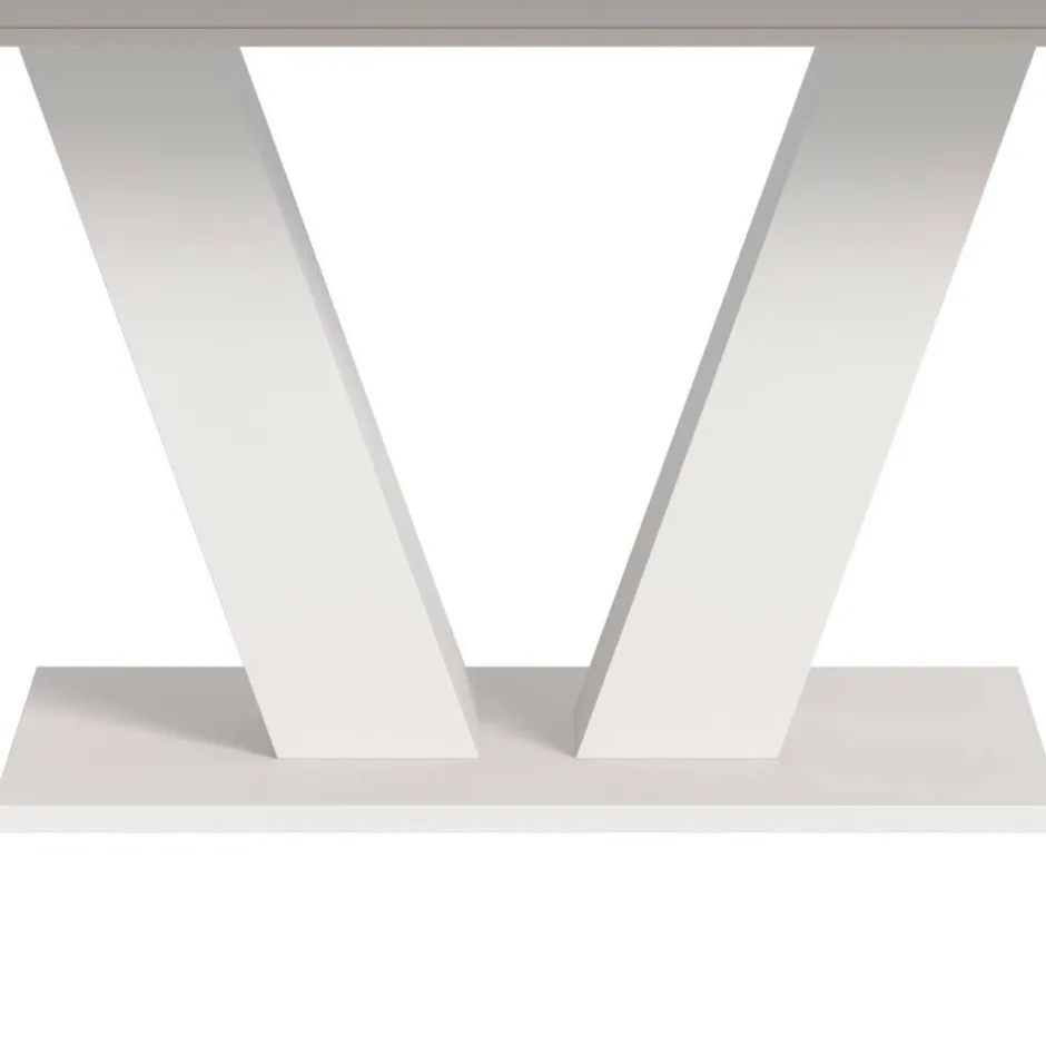 - Weißes Fußgestell in V-Form mit stabiler Bodenplatte
