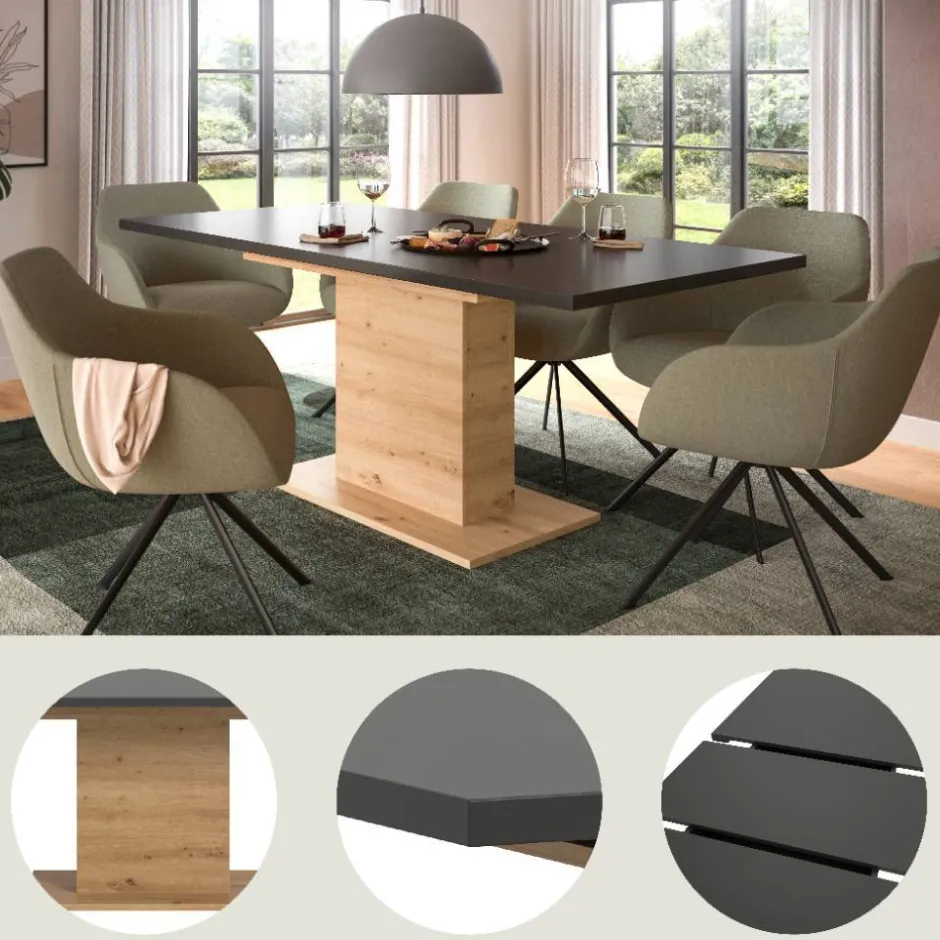 - Solider Esstisch in Grau und Holzoptik Wildeiche
