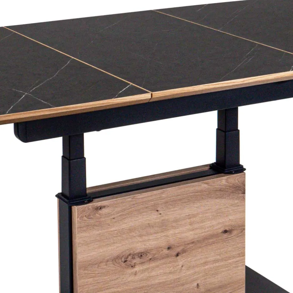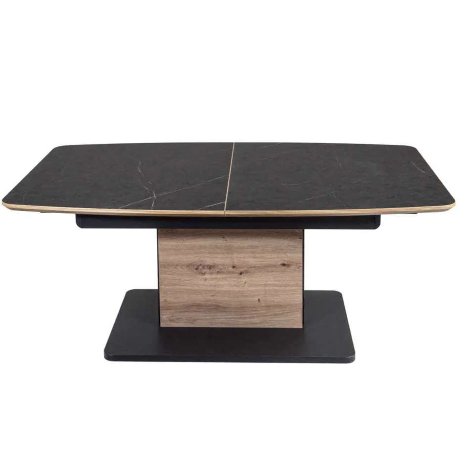 - Modern und elegant präsentiert sich dieser Tisch in den Farben Schwarzgrau und Wildeichefarben