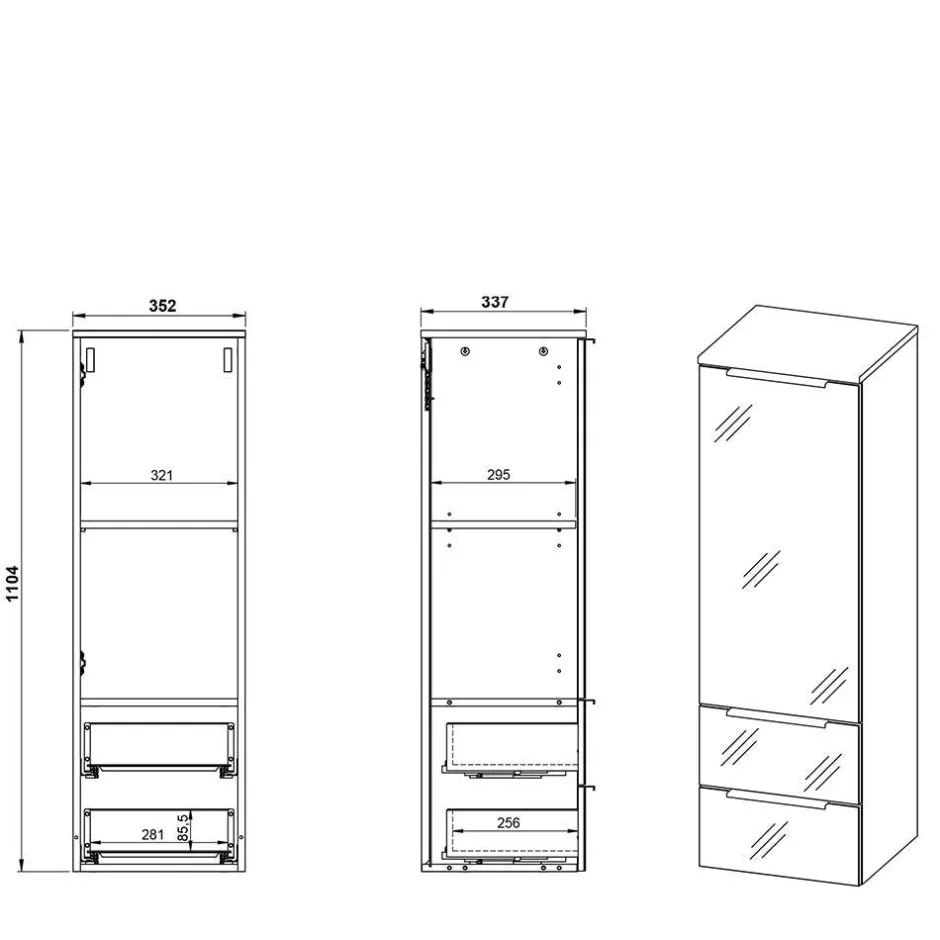 - Maximale Belastbarkeit: Böden und Schubladen jeweils 10 kg