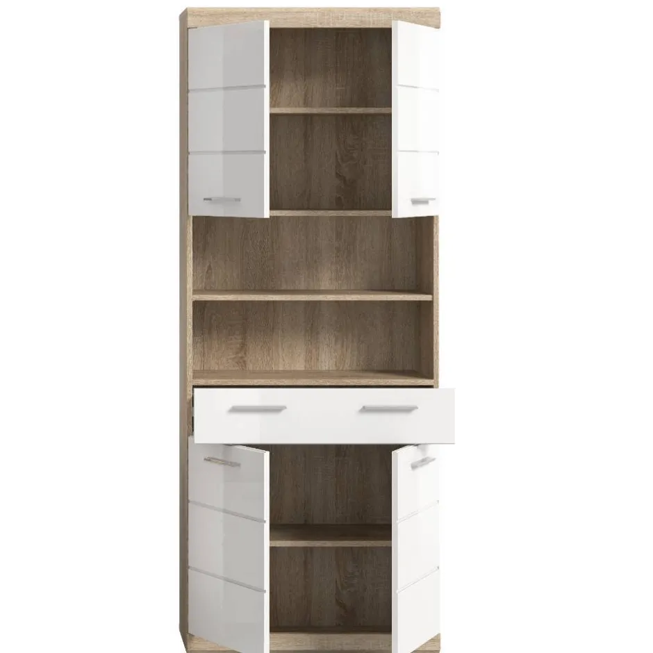 - Schicker Bad Hochschrank in Weiß und Sonoma Eiche